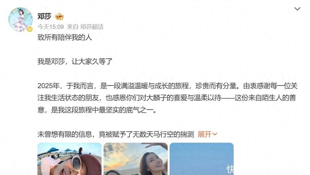 知名女演员发千字长文!首次回应离婚传闻邓莎近日发布一篇近千字的长文,首次回应外界关于她婚姻的诸多猜测。这篇文字没有激烈指责,也没有刻意渲染痛苦,而是平静地陈述了一段十六年婚姻的真实样貌:经济上的各自独立,日渐加深的代沟,以及她最终选择不再继续“不被看见”的状态。